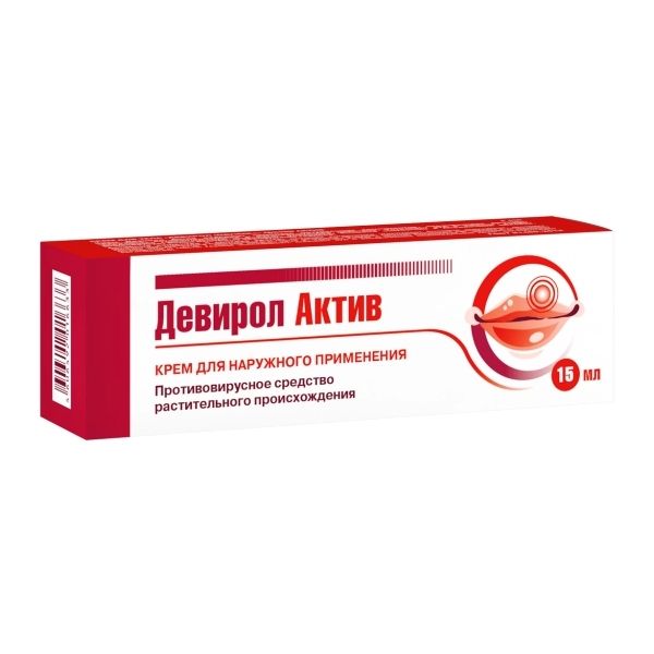 Крем для тела «Девирол Актив» – противовирусное средство растительного происхождения. Способствует устранению зуда и жжения, препятствует распространению вируса в организме и уменьшает площадь очага поражения герпесвирусной инфекции.