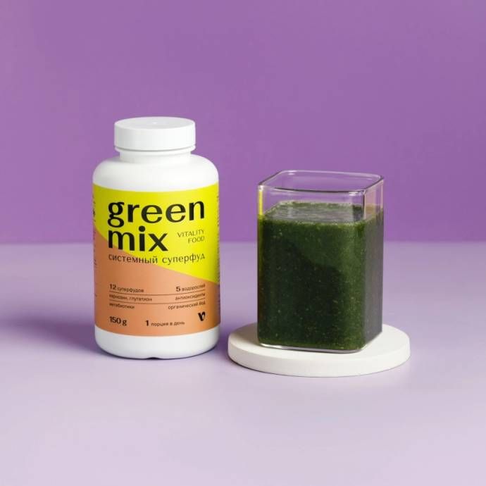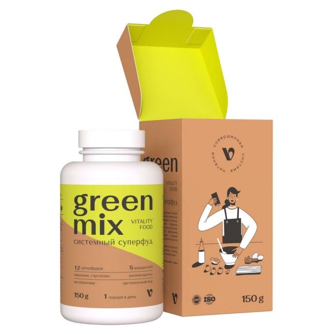 Виталити Фуд грин микс – концентрированный продукт, содержащий мощный антиоксидантный комплекс из 6 активных компонентов, продукты биотехнологий, 12 суперфудов и витамины. Является уникальным источником хлорофилла, фукоидана, широкого спектра органических минералов, в частности, йода. Способствует эффективному устранению оксидативного стресса, активации иммунитета, улучшению работы сердечно-сосудистой системы и обменных процессов.